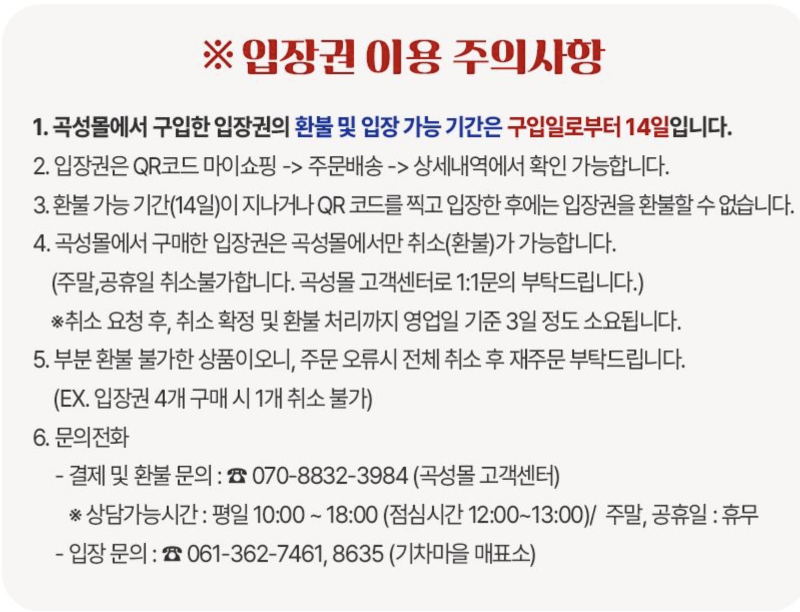 - 입장료: 대인 5,000원 / 소인,경로 4,500원 (기차마을 입장권 포함)