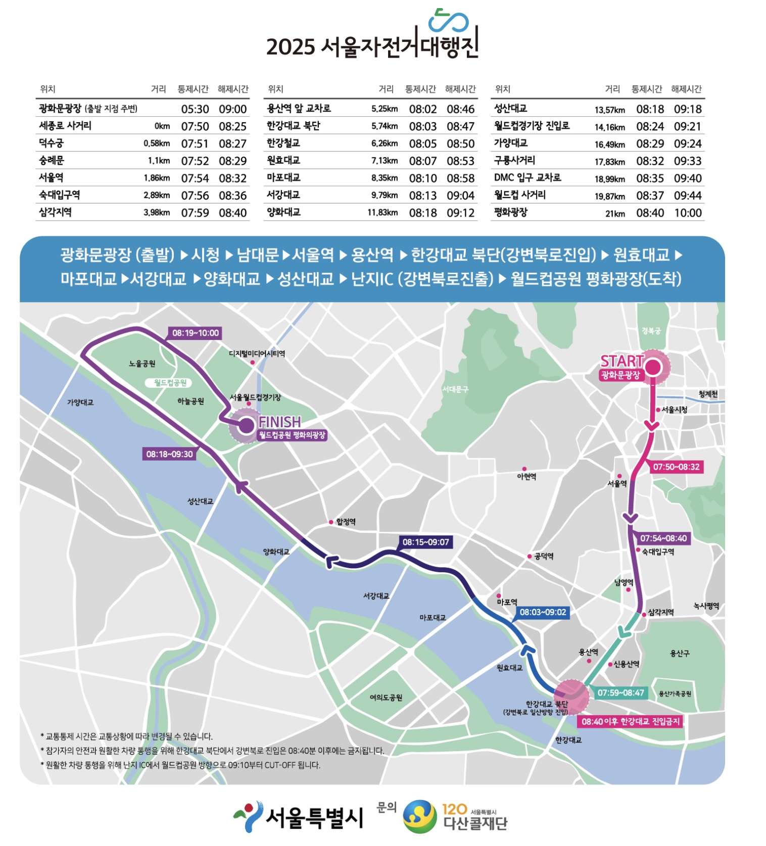 사유: 2025 서울 자전거대행진 행사로 일부 구간 교통 통제