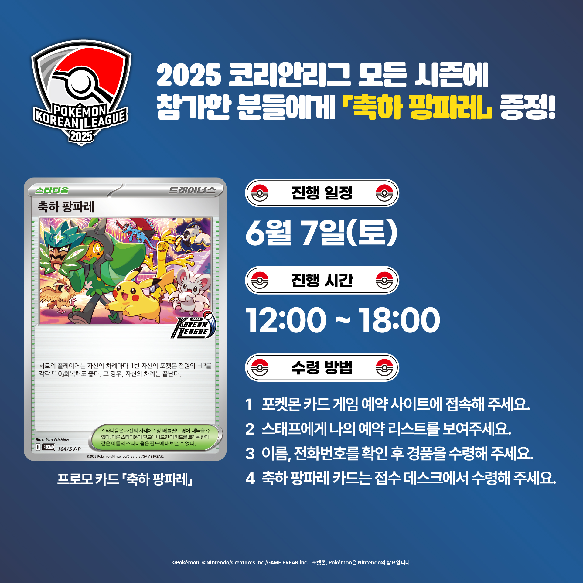 - 참가 방법: 포켓몬 코리아 공식 홈페이지를 통해 사전 신청 (6월 1일까지 마감)