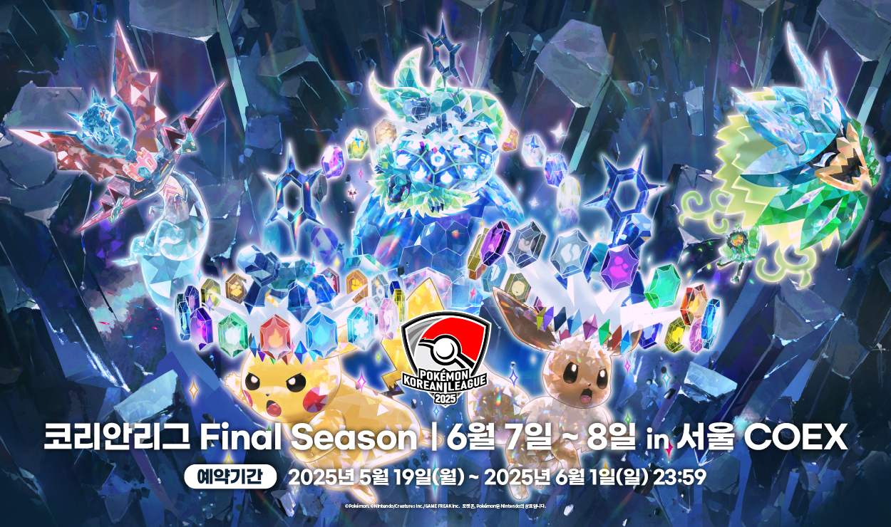 가장 주목받는 콘텐츠는 ‘포켓몬 카드 게임 2025 코리안리그 파이널 시즌’입니다. 이 대회는 포켓몬 월드챔피언십 출전을 위한 대표 선발전으로, 주니어/시니어/마스터 부문으로 나뉘어 1년간 누적된 승점을 바탕으로 초청된 상위 트레이너들이 겨루게 됩니다. 이 대회를 통해 2025 포켓몬 WCS 대표가 결정되기 때문에 관심이 뜨겁습니다.