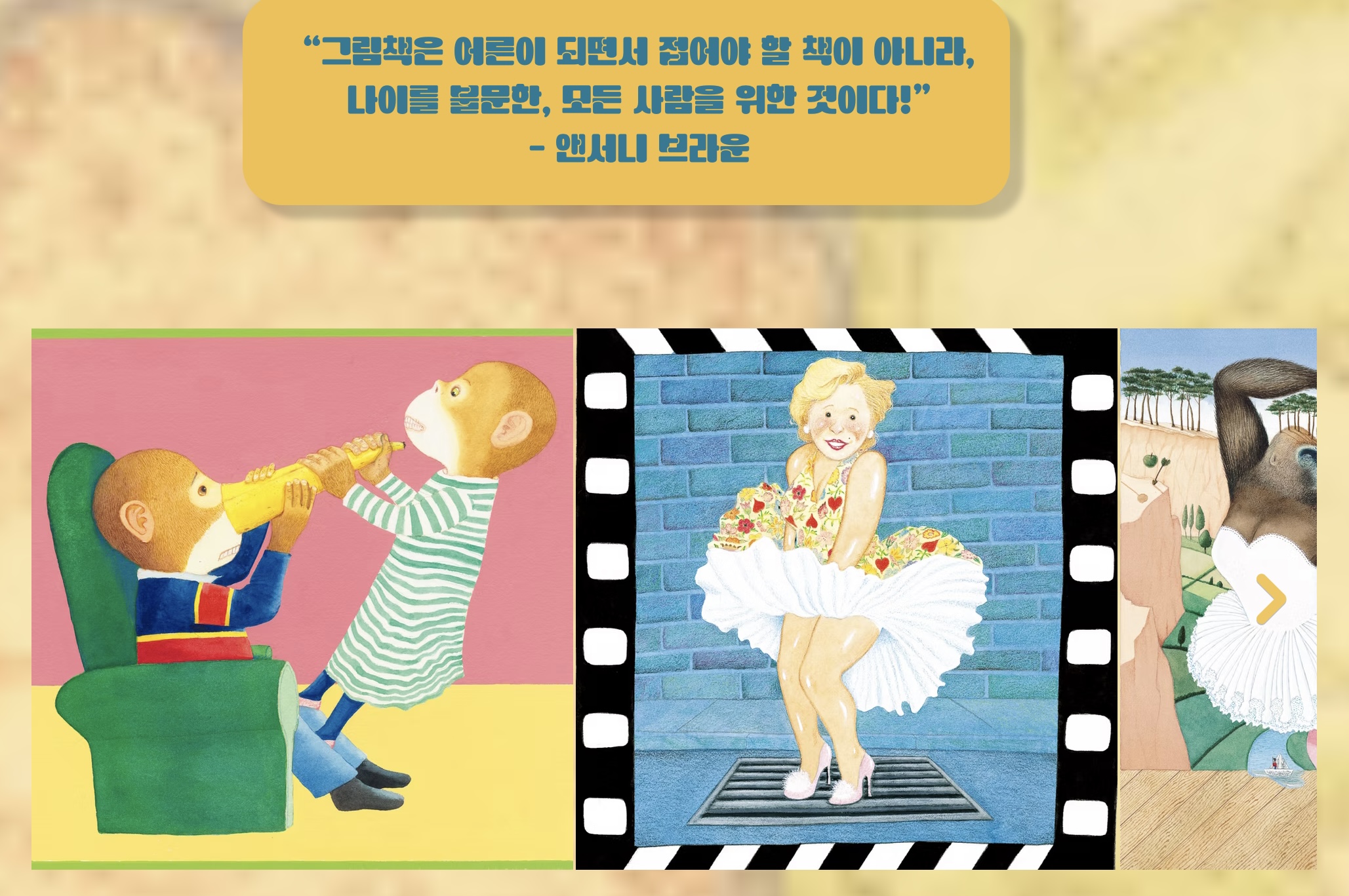 전시 특징: 세계적인 그림책 작가 앤서니 브라운의 100여 작품을 전시한 대규모 전시로, 아이들의 상상력을 자극하고 스토리텔링을 통한 미술 교육 효과도 높습니다.